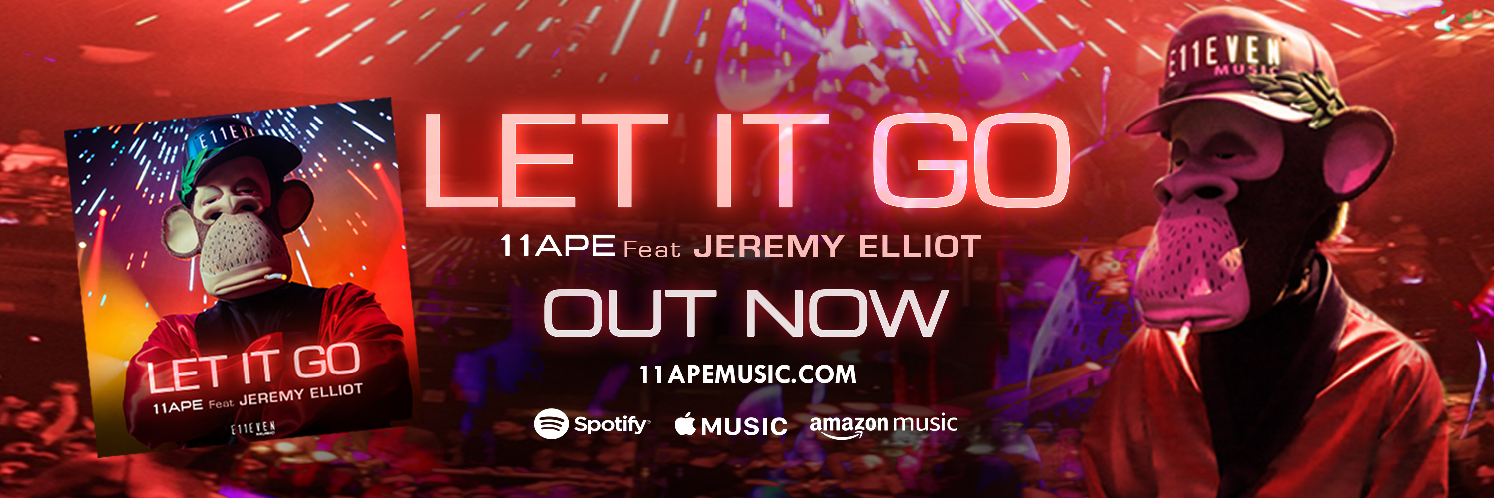 The new single, “Let it Go,” features vocals from Grammy-nominated songwriter/producer Jeremy Elliot. It will surely be a dance floor banger with Jeremy’s growling rock vocals and big pop hooks mixed with 11APE’s energized club beats.